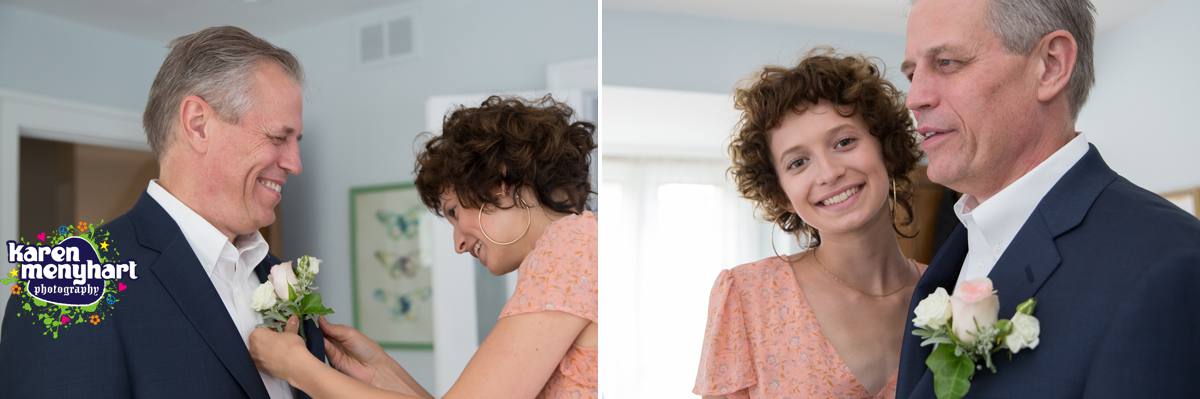 Pinning the boutonniere has a wedding level 3.8 of difficulty…. Chris’s sweet daughter, mastering her skills